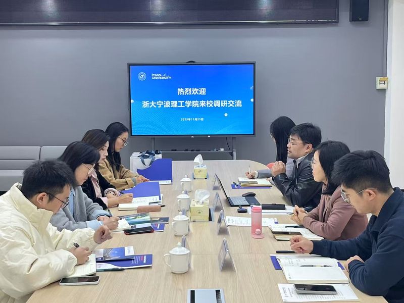 王坚对韩晶晶一行到访表示欢迎,并系统介绍了学院的发展概况、中外合作办学模式与创新实践成果。叶鸿随后分享了合作办学中党建与学生管理方面的特色工作。韩晶晶对学院的热情接待表示感谢,并对圣光机学院在短期内取得的办学成果给予了高度评价。在交流环节,双方重点围绕中外合作办学高质量发展、提升学生考研与出国(境)率等关键议题展开讨论,就项目设计、资源协同与实施路径等方面进行了深入探讨。