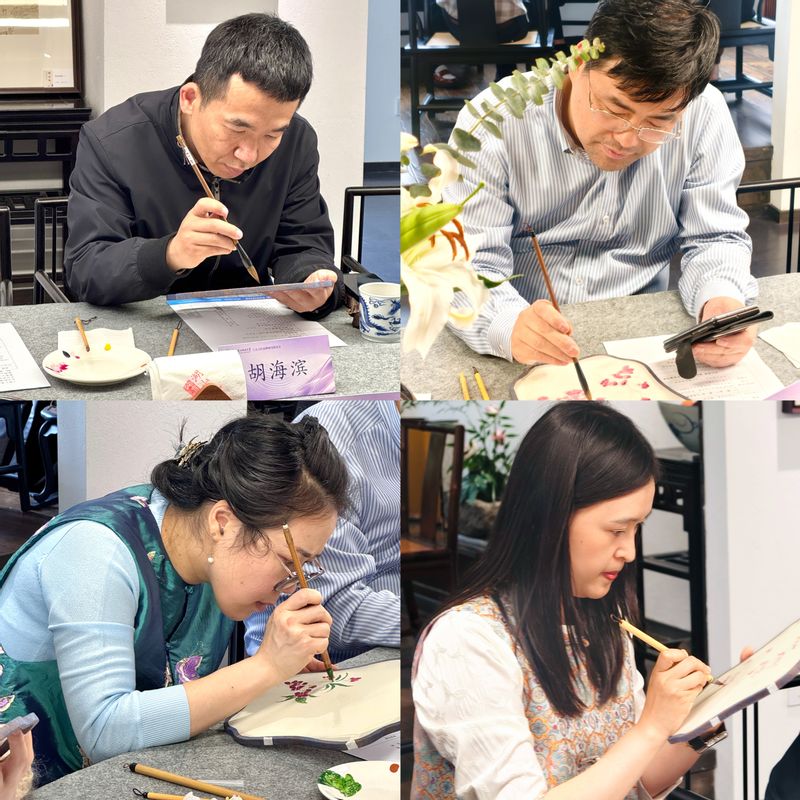 4月10日下午,校工会联合圣光机学院举办的“一把江南扇,满枝国际情”春日绘扇雅集顺利举行。活动旨在深入推进学校工会文化品牌建设,集中展示“一院一品”“一部一品”立项成果,同时以扇为媒、以画传情,让俄罗斯教师沉浸式体验中国传统文化,共叙中俄友谊。校党委副书记、工会主席钱波,校工会、圣光机学院领导班子,自动化学院工会主席,教职工读书俱乐部、经典诵读俱乐部负责人及中俄双方教师代表共同参与。